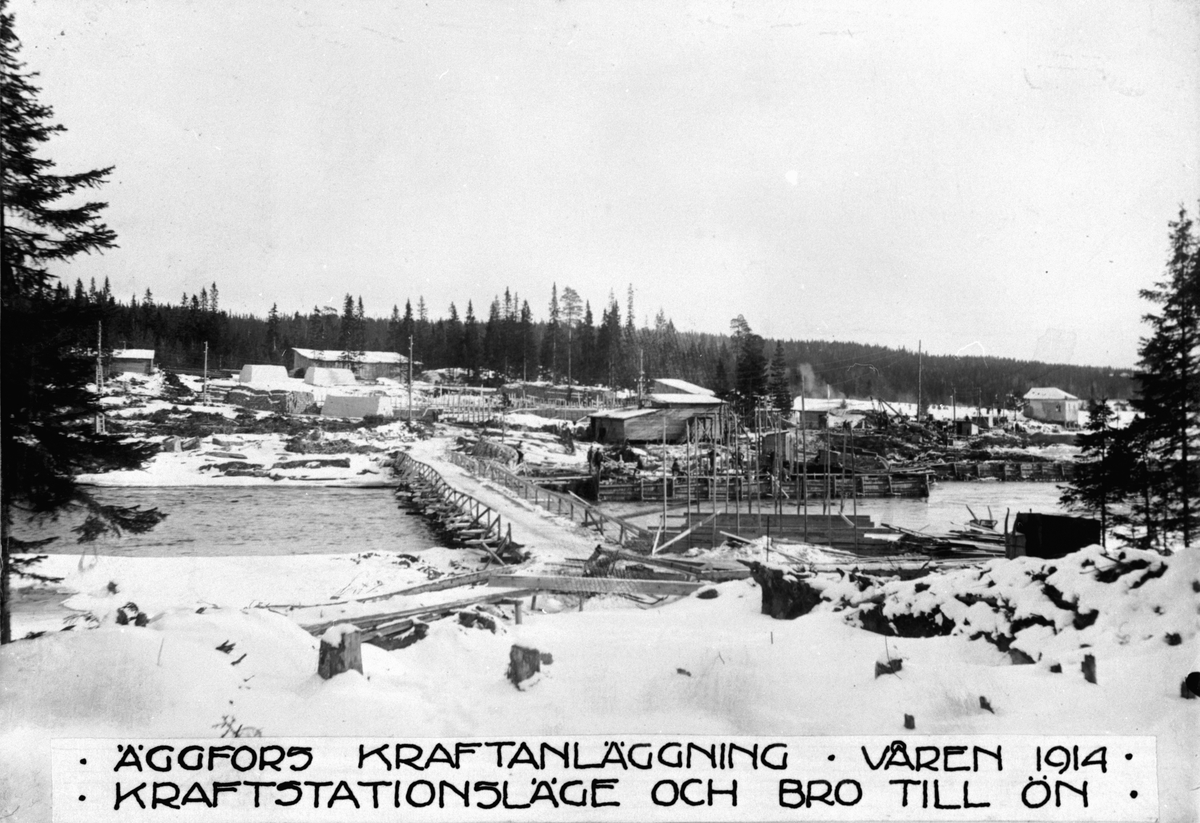 Byggherre: Byggnadsaktiebolaget Contractor, Stockholm. Kraftstatoionsläge och bro till ön.