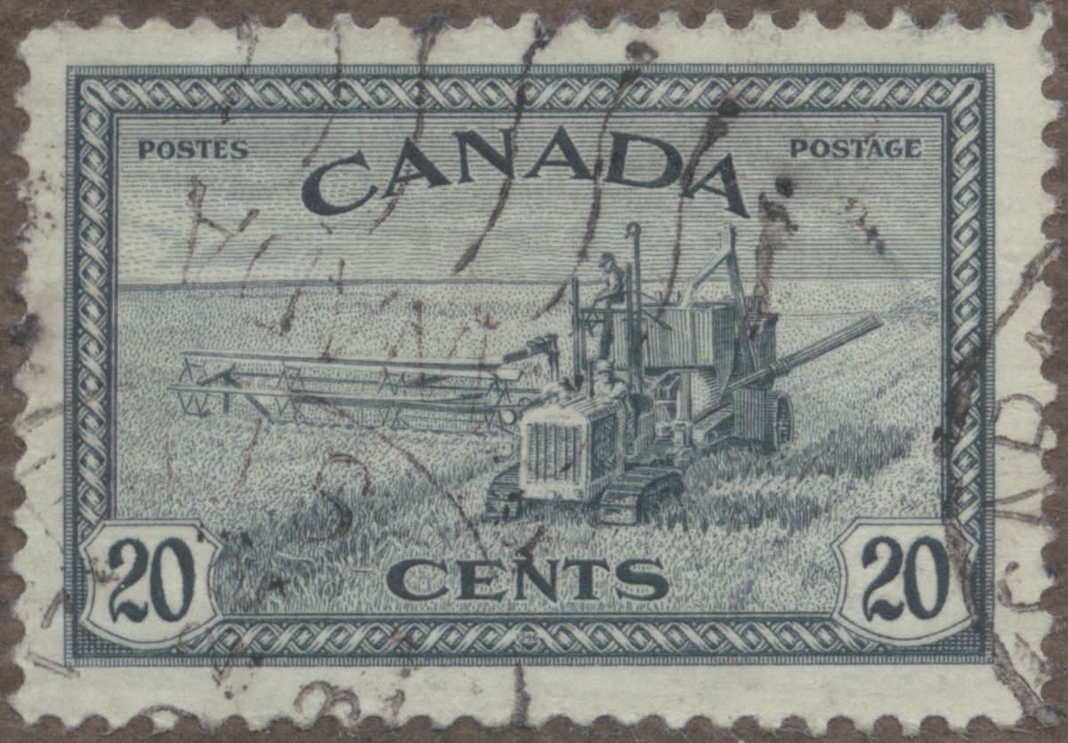 Frimärke från Canada, 1946. Motiv av Stor motoriserad skördemaskin