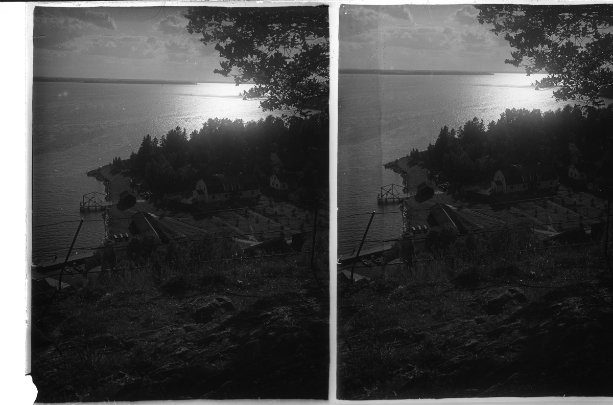 Stereonegativ, vy över vattnet, okänd plats. Möjligen Stockholms skärgård.