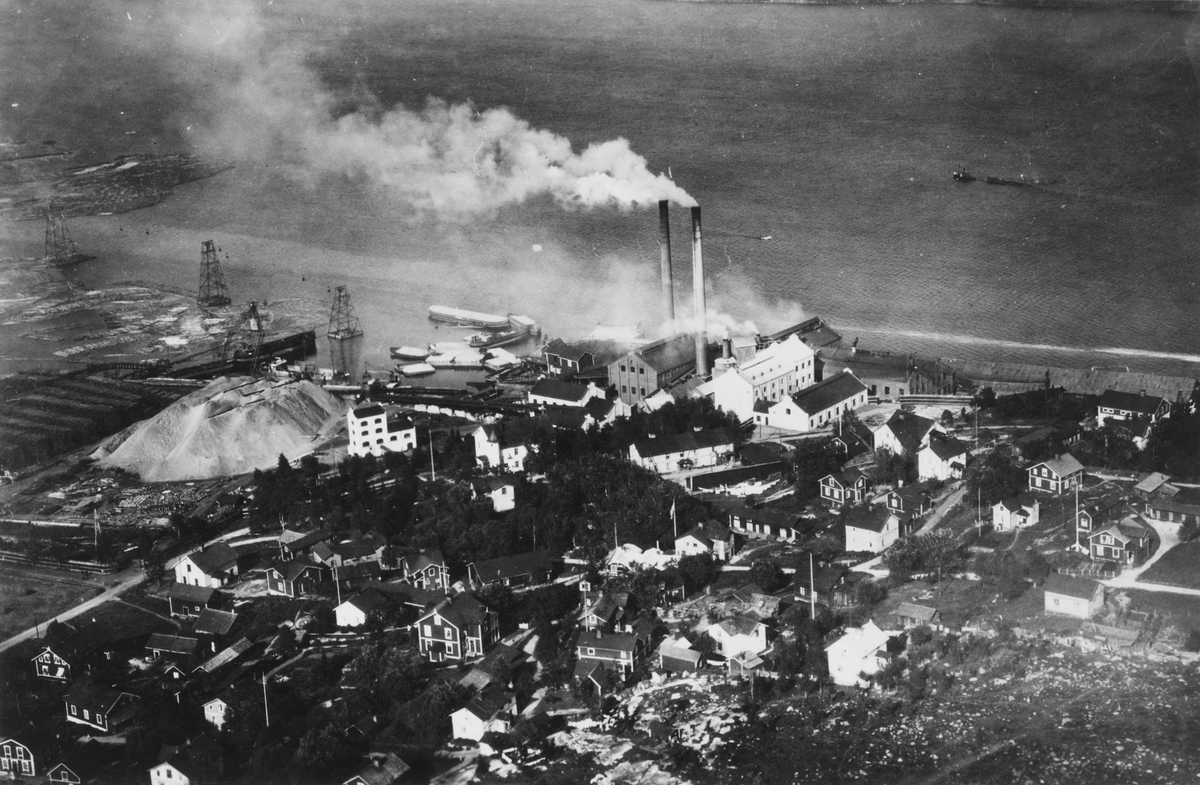 Kramfors aktiebolag. Flygfotografi över sulfatfabriken vid Frånö.