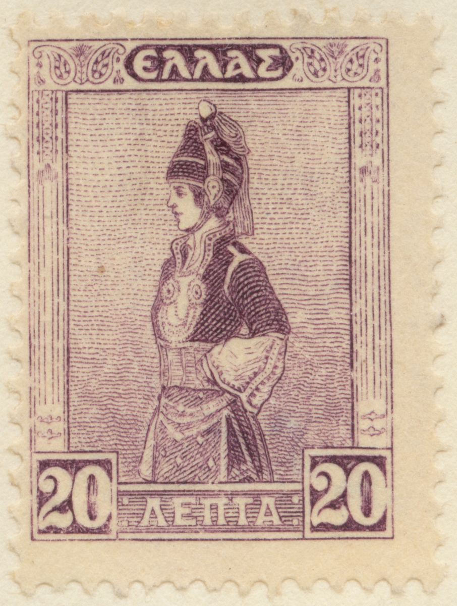 Frimärke från Grekland, 1927. Motiv av Mecedonisk dräkt.