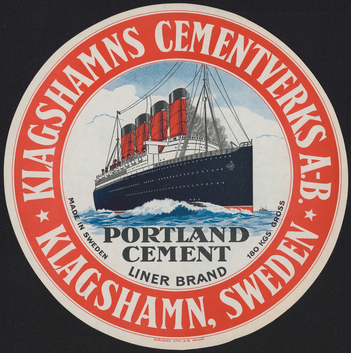 Fabriksmärke för cementpåsar. Klagshamns Cementverks AB. Portland Cement.