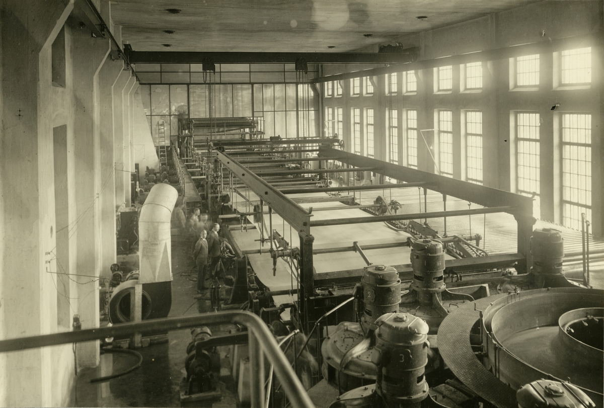 Titel: Maskineri för pappersindustri. Tillverkat vid KMW för Billeruds AB, Säffle. Pappersvidd 3050 mm. Ur album för KMW. AB Karlstads Mekaniska Werkstad.
