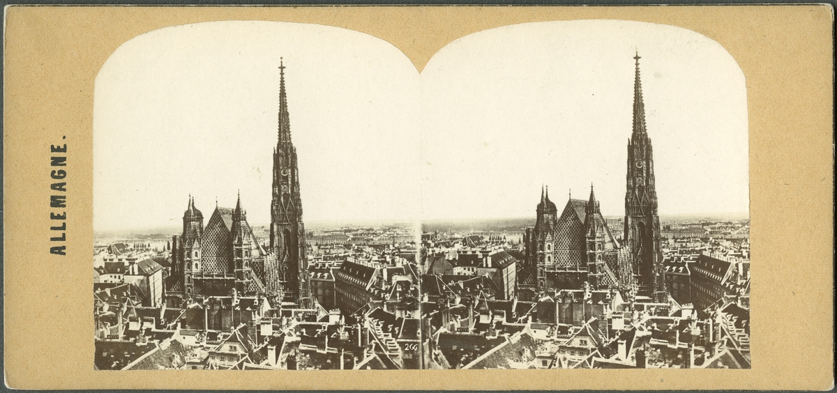 Stereobild med motiv av äldre kyrka. Domen i Köln?