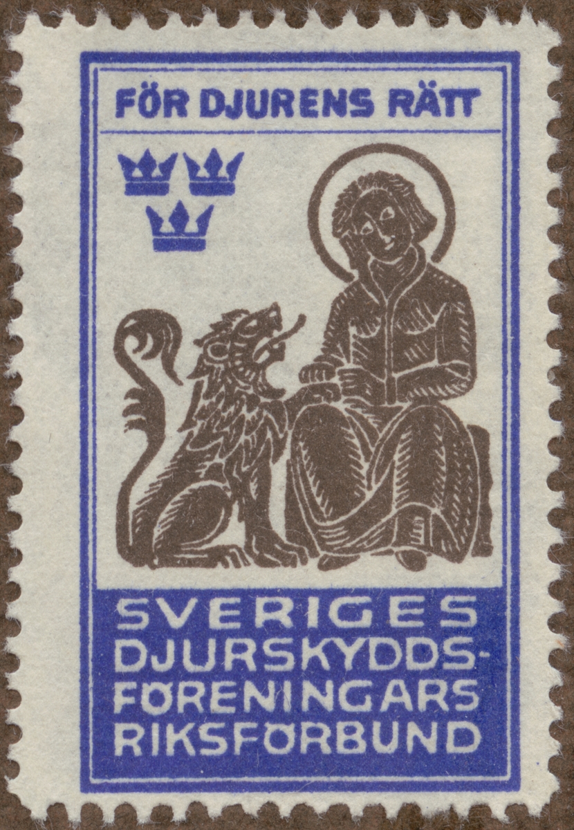 Märke från Sverige, . Motiv av Symbol för Djurskydd--- Sveriges Djurskydds Föreningars Riksförbund