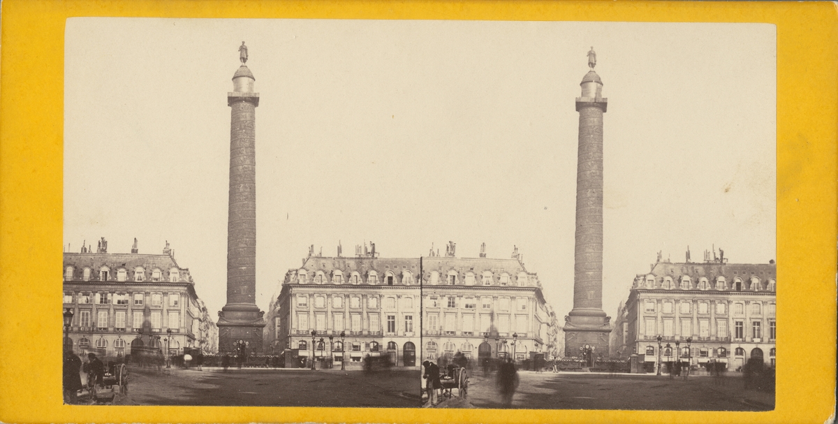 Stereobild med motiv av Vendômekolonnen på torget Place Vendôme i Paris. På den en drygt 44 meter höga kolonnen står en staty av Napoleon. Ursprungligen restes den på order av Napoleon för att fira segern vid Austerlitz. Vid Place Vendôme bodde Frédéric Chopin i 12 år fram till sin död 1849.