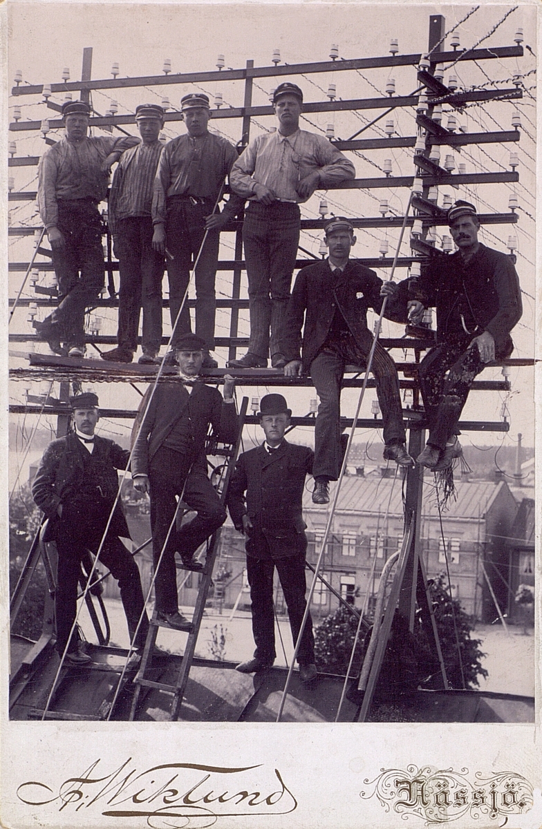 Linjearbetare samt assistenter i Nässjö i början på 1890-talet. Egnér längst till vänster.