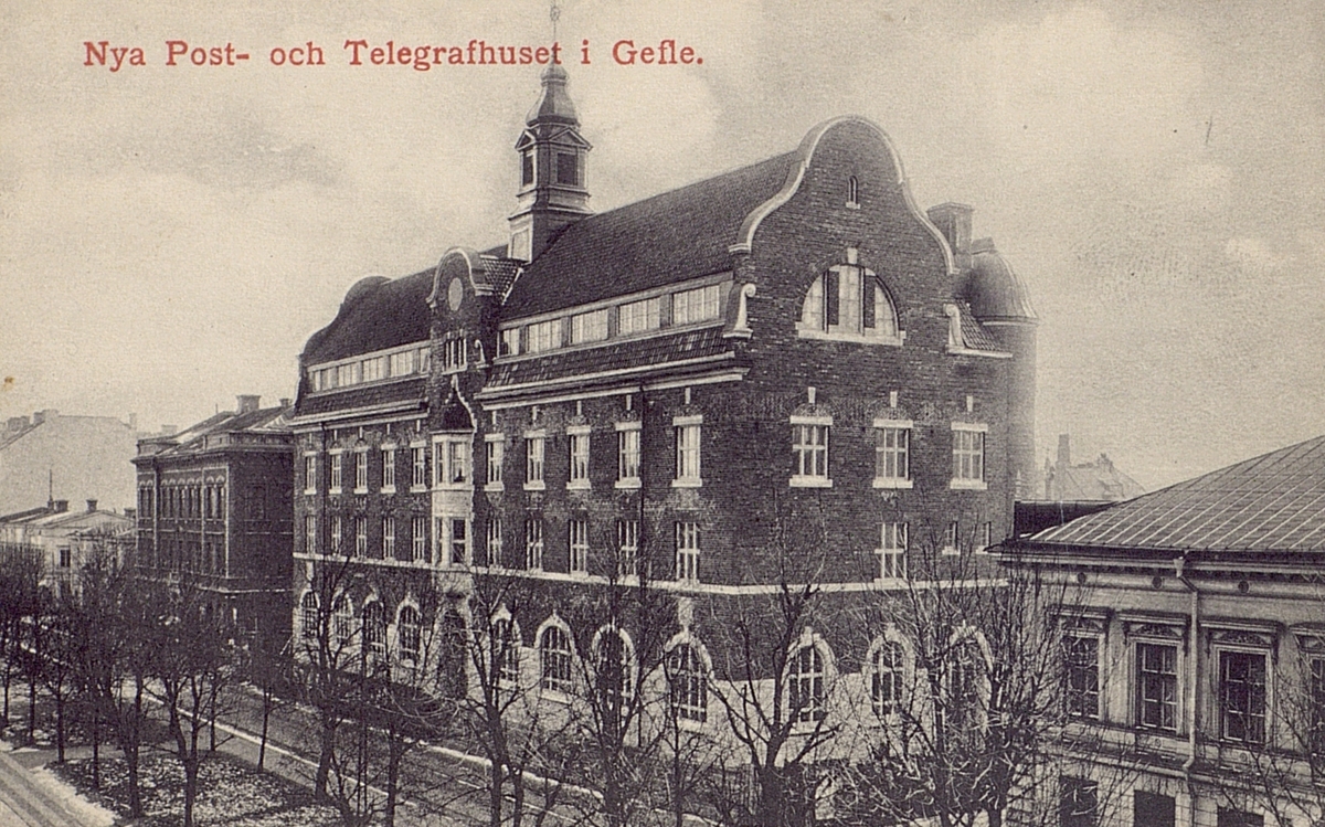 Vykort. Gävle. Nygatan med Nya post och telegrafhuset.