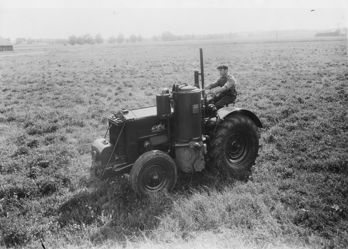 Gengastraktor tillverkad vid Bolinder Munktell, i praktisk drift 1942.