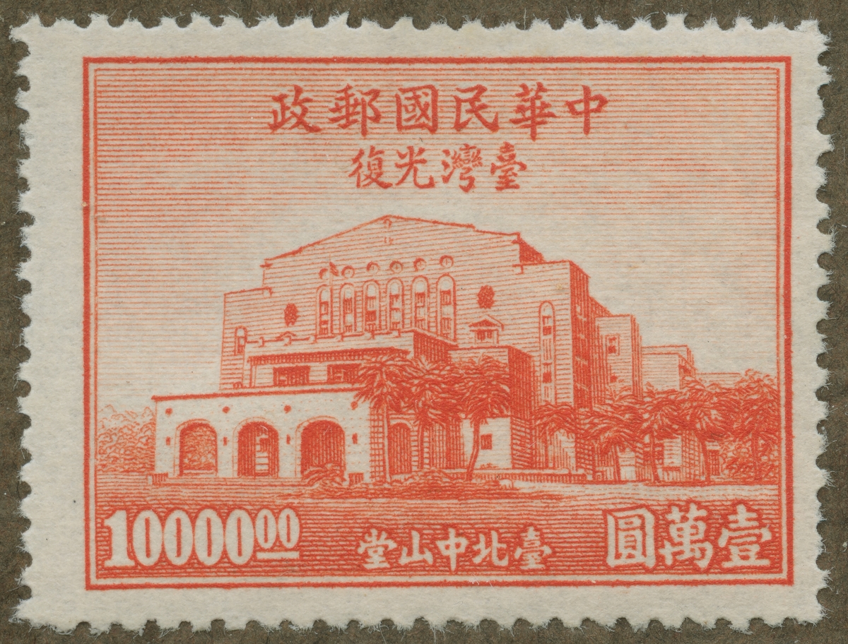 Frimärke från Kina, 1948. Motiv av Sun Yat-sen Minneshall.
