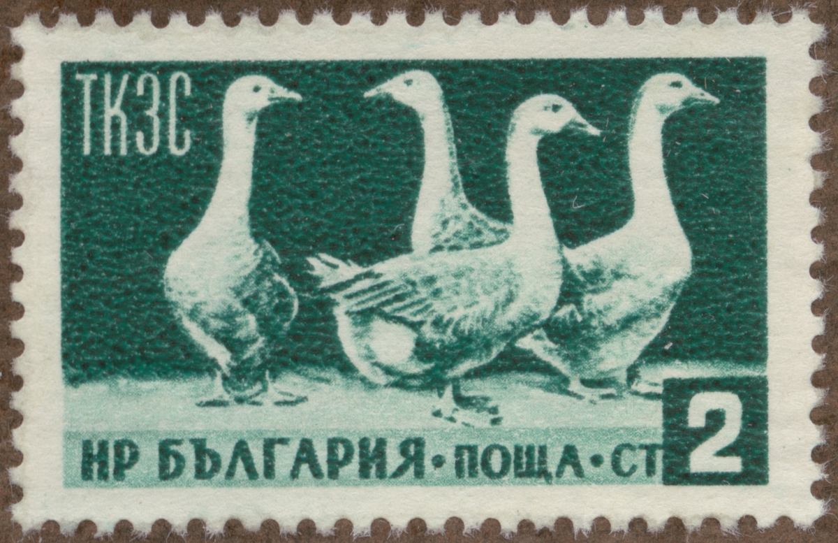 Frimärke från Bulgarien, 1955. Motiv av Bulgariska Gäss Ekonomisk Propaganda