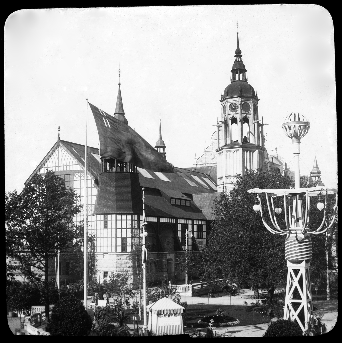 Skioptikonbild med motiv från Allmänna Konst- och Industriutställningen i Stockholm 1897.