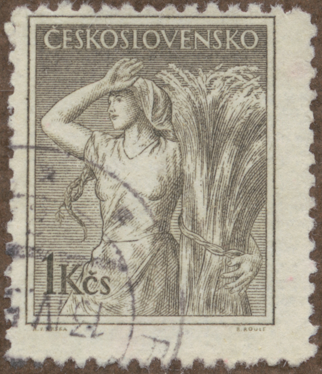 Frimärke från Tscheckoslovakiet, 1954. Motiv av Kvinna med stor sädeskärve