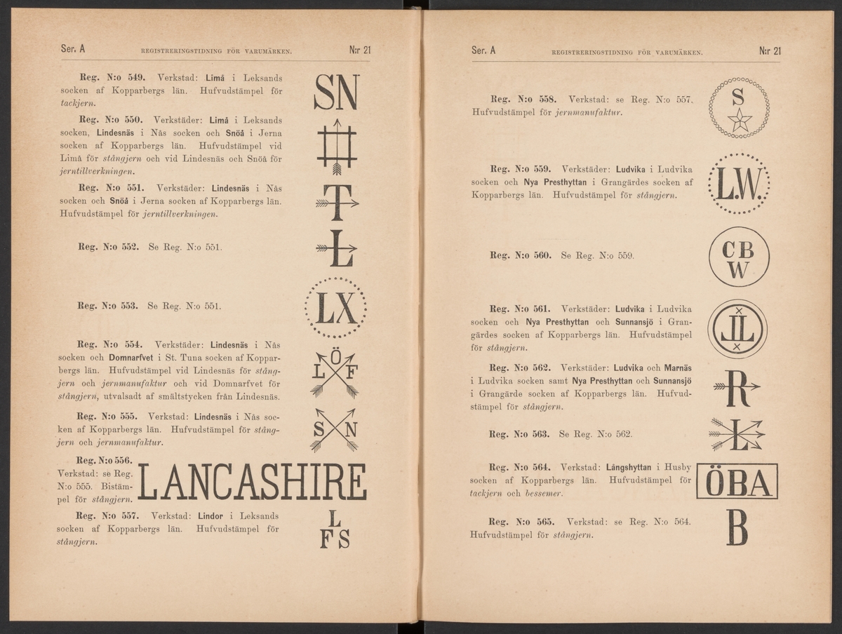 Registreringstidning för varumärken 1885. Serie A, Svenska järnstämplar.