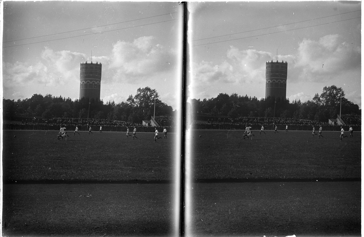 Stereonegativ med motiv av fotbollsmatch på okänd fotbollsplan.