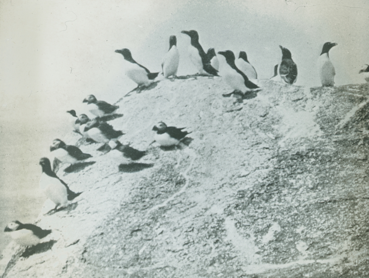 Fotografi från expedition till Spetsbergen. Motiv av fåglar på klippa.