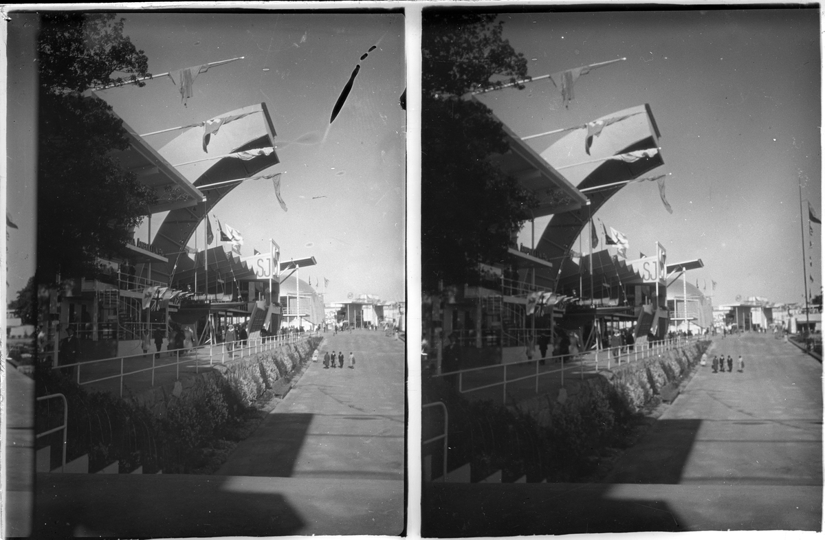 Stereonegativ med motiv från Stockholmsutställningen 1930 på Norra Djurgården i Stockholm.