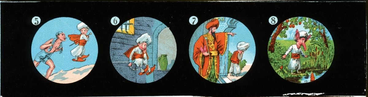 Titel: Målad bild på glas för skioptikon/laterna magica. Sagor från orienten.
