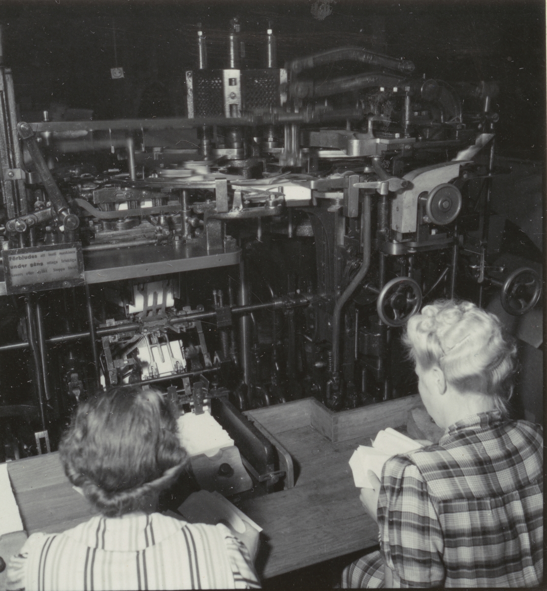 Papyrus fabriker. Kuvertmaskiner i arbete, 1944.