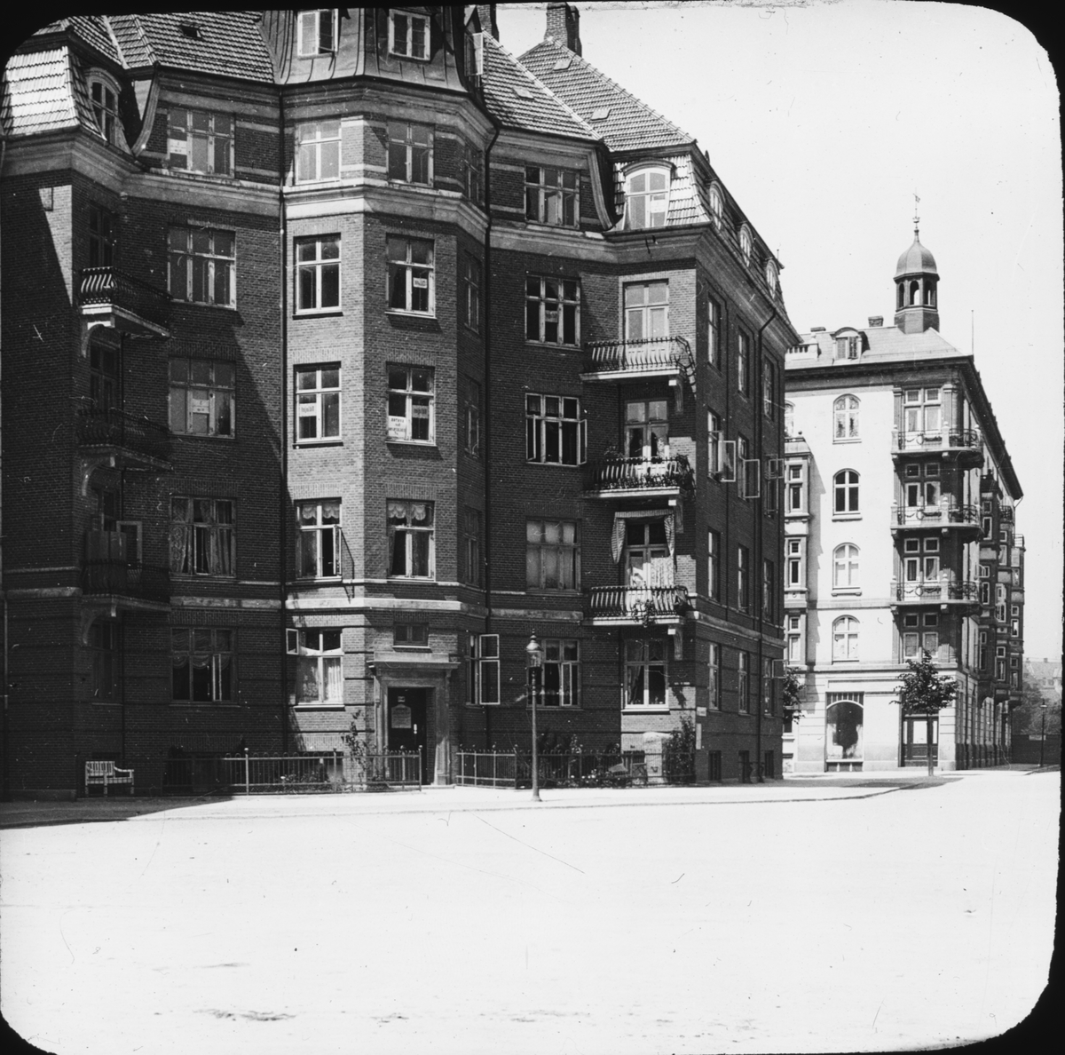 Skioptikonbild med motiv från Köpenhamn vid sekelskiftet 1900.