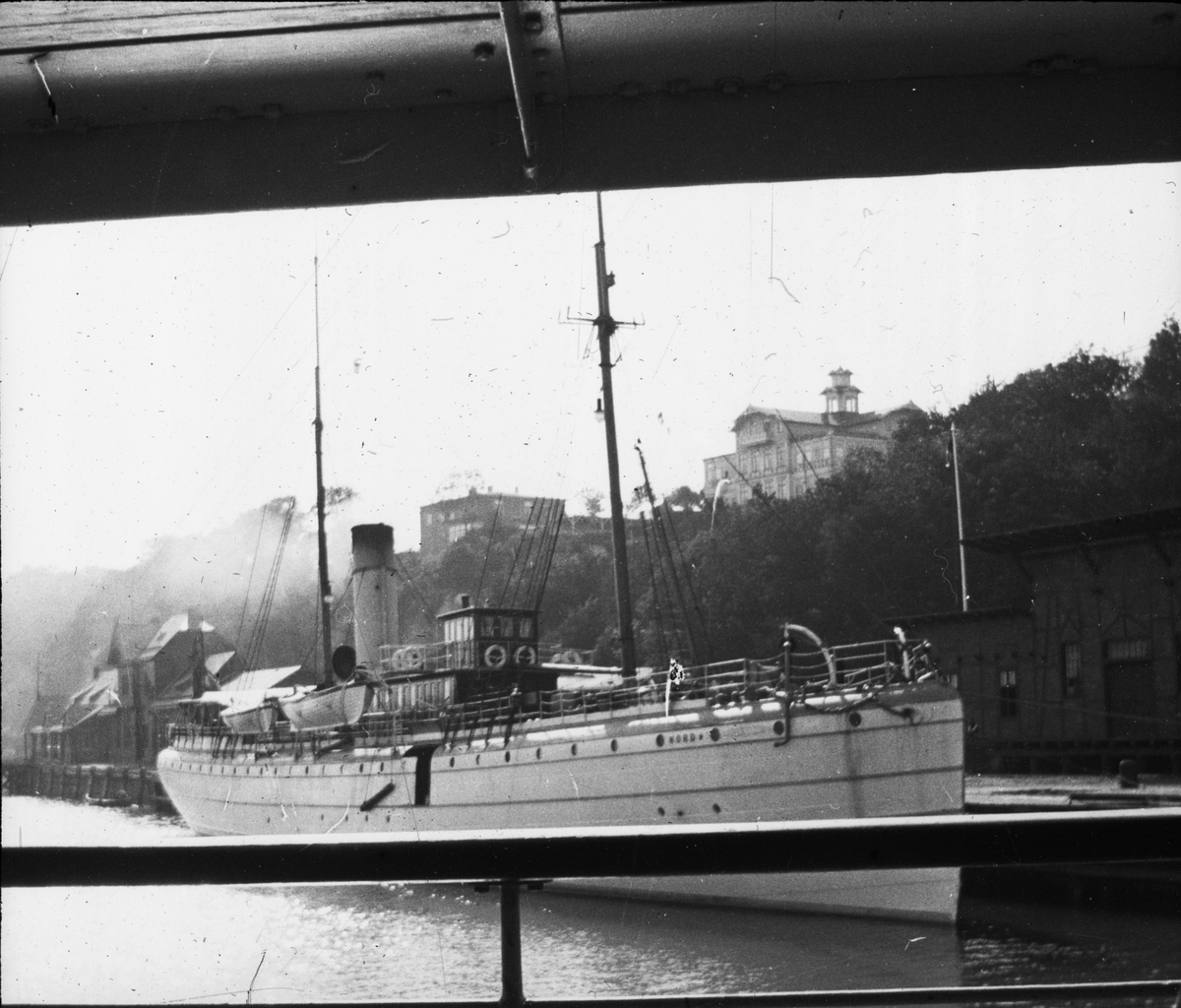 Skioptikonbild med motiv av fartyg, okänd hamn.