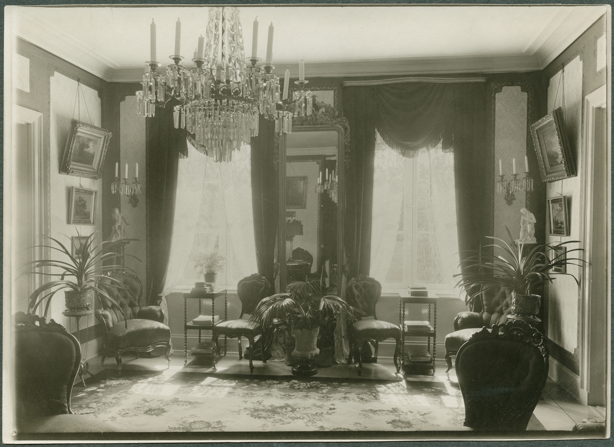 Interiör, troligen av Thorvald Gehrmans hem i Hedemora. Fotografi med kemiska retusch.
