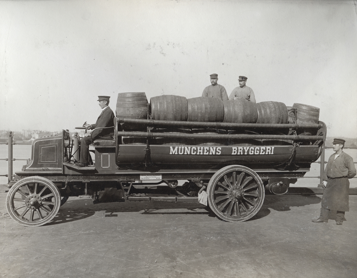 10 hk, 2 cyl. Daimler lastvagn för 5000 kg belastning. Levererad till Münchens Bryggeri, Stockholm 1903.