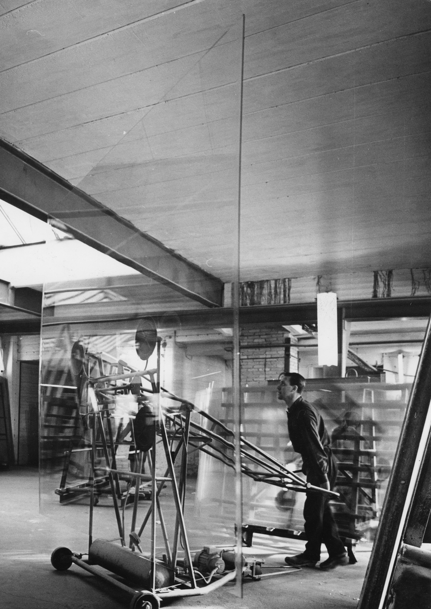 Glas i stora dimensioner tillverkas av Henry Josefsson och Åke Hellborg vid Emmaboda Glasverk.