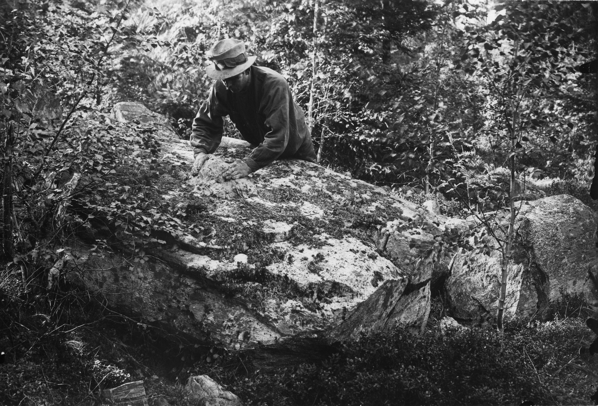 Gyttorps krutbruk. Före sprängningen. Nitroladdningen övertäckes med väl tillpackad lera eller stenfri jord.