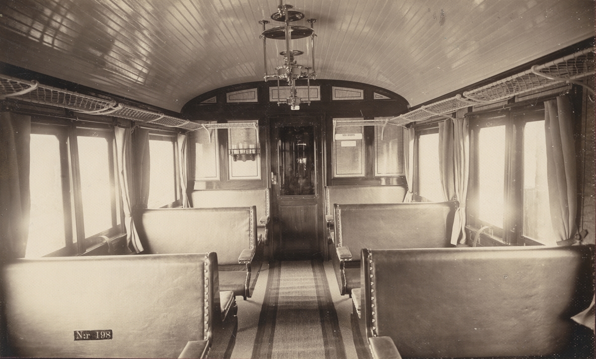 Titel: Tågvagn. 2:a klass kupé. Ur album: Wagnfabriks Aktiebolaget i Södertälge. No 4.