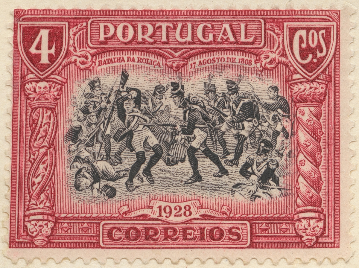 Frimärke från Portugal, 1928. Motiv av Slaget vid Rolica 17 augusti 1808