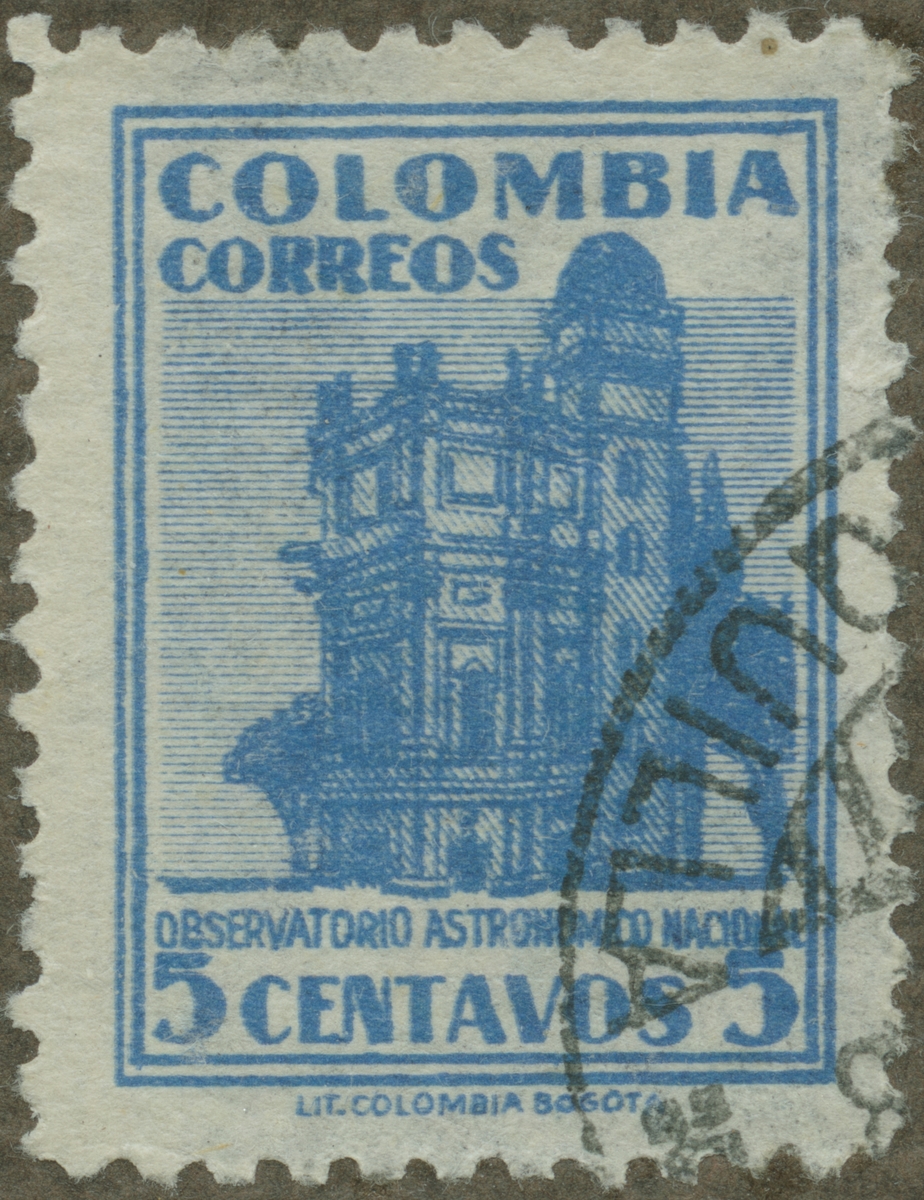 Frimärke ur Gösta Bodmans filatelistiska motivsamling, påbörjad 1950. Frimärke från Colombia, 1946. Motiv av Astronomiska National-observatoriet