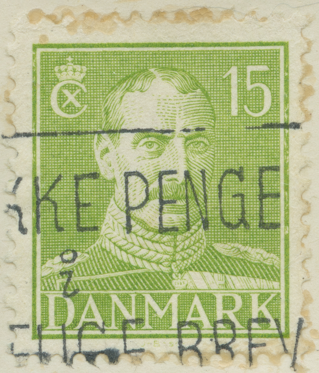 Frimärke från Danmark, 1942. Motiv av Monogram Kung Christian X: av Danmark -1870-1947.