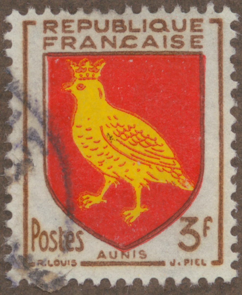 Frimärke från Frankrike, 1954. Motiv av Vapen Aunis "-Serie: franska provinsers vapen-"