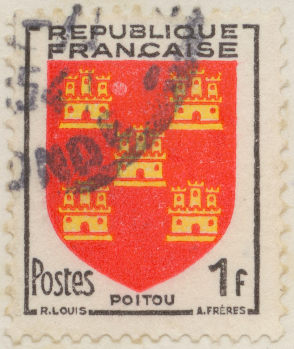 Frimärke från Frankrike, 1953. Motiv av Vapen: Poitou "-Serie: franska provinsers vapen-"