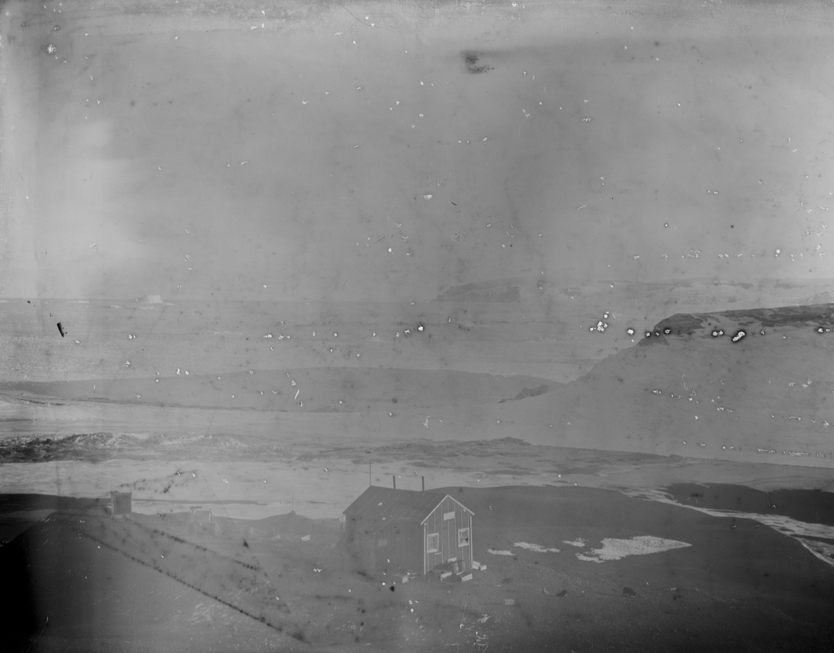 Fotografi från undsättningsexpeditionen med fartyget Uruguay 1903. Vy över hus i snölandskap.