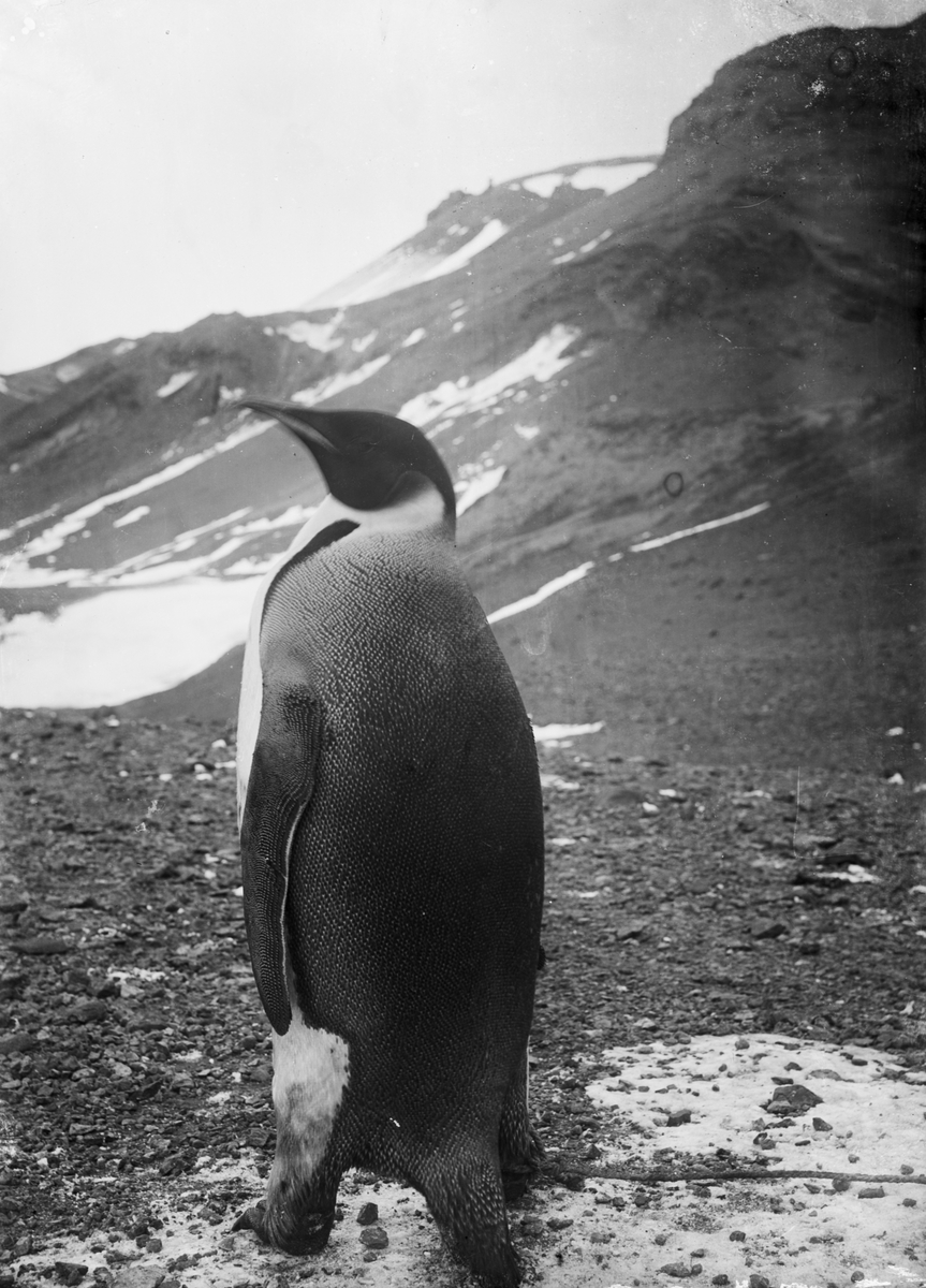 Fotografi från undsättningsexpeditionen med fartyget Uruguay 1903. Motiv av pingvin.