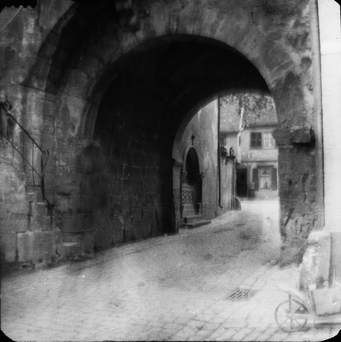 Skioptikonbild med motiv av gränd i Rothenburg.