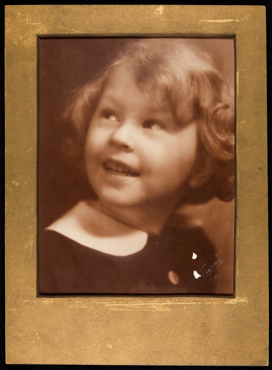 Porträtt av flicka. Bruntonat fotografi överfört på plast.