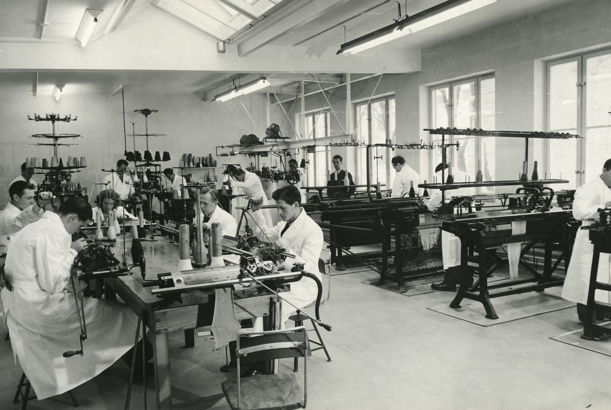 En av trikåsalarna vid Norrköpings Textilinstitut 1949.