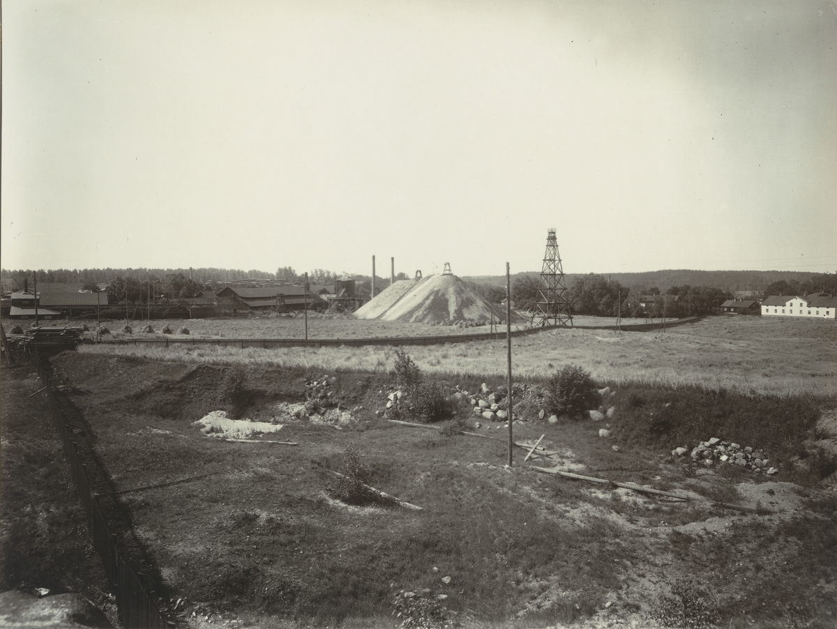 Boxholms Järnverk. Utsikt över masugnens slaggvarp omkring 1917.