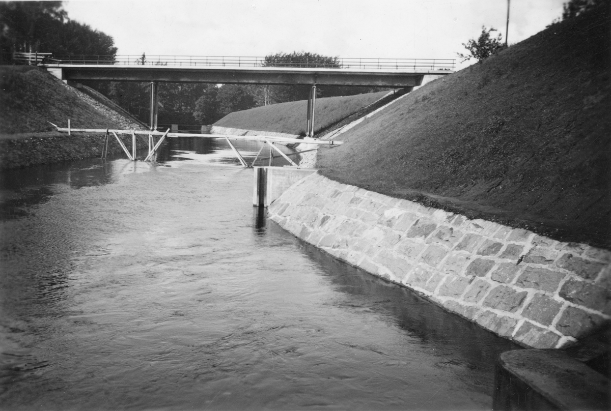 Släntbeklädnad och bro vid Slottsmöllans Krafstation 1939-40.