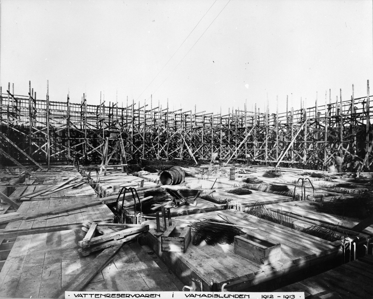 Byggherre: Byggnadsaktiebolaget Contractor, Stockholm. Vattenreservoar i Vanadislunden.