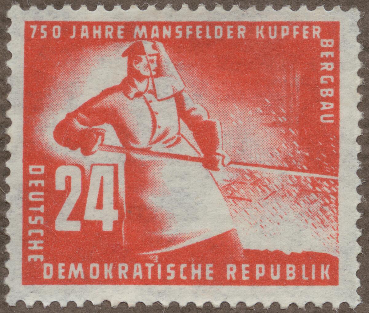 Frimärke från Tyskland, 1950. Motiv av Tysk kopparsmältning 750-årsminne av kopparutvinningen vid Mansfelder gruvorna: 1200-1950.
