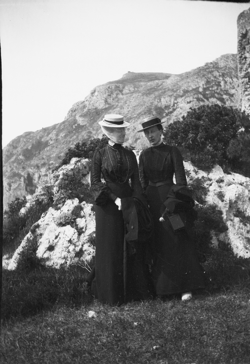 Drottning Victorias bilder. Drottning Victoria med sällskap. Capri. Victoria håller en kamera i handen.