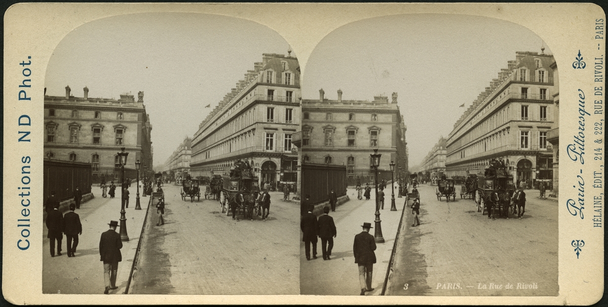Stereobild med motiv från gatan rue de Rivoli, Paris.