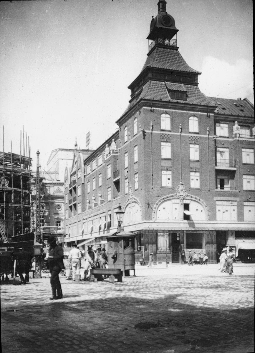 Bilden har förvarats i kartong märkt: Köpenhamn 9. 1908. Text på bild: "Österbrogade".