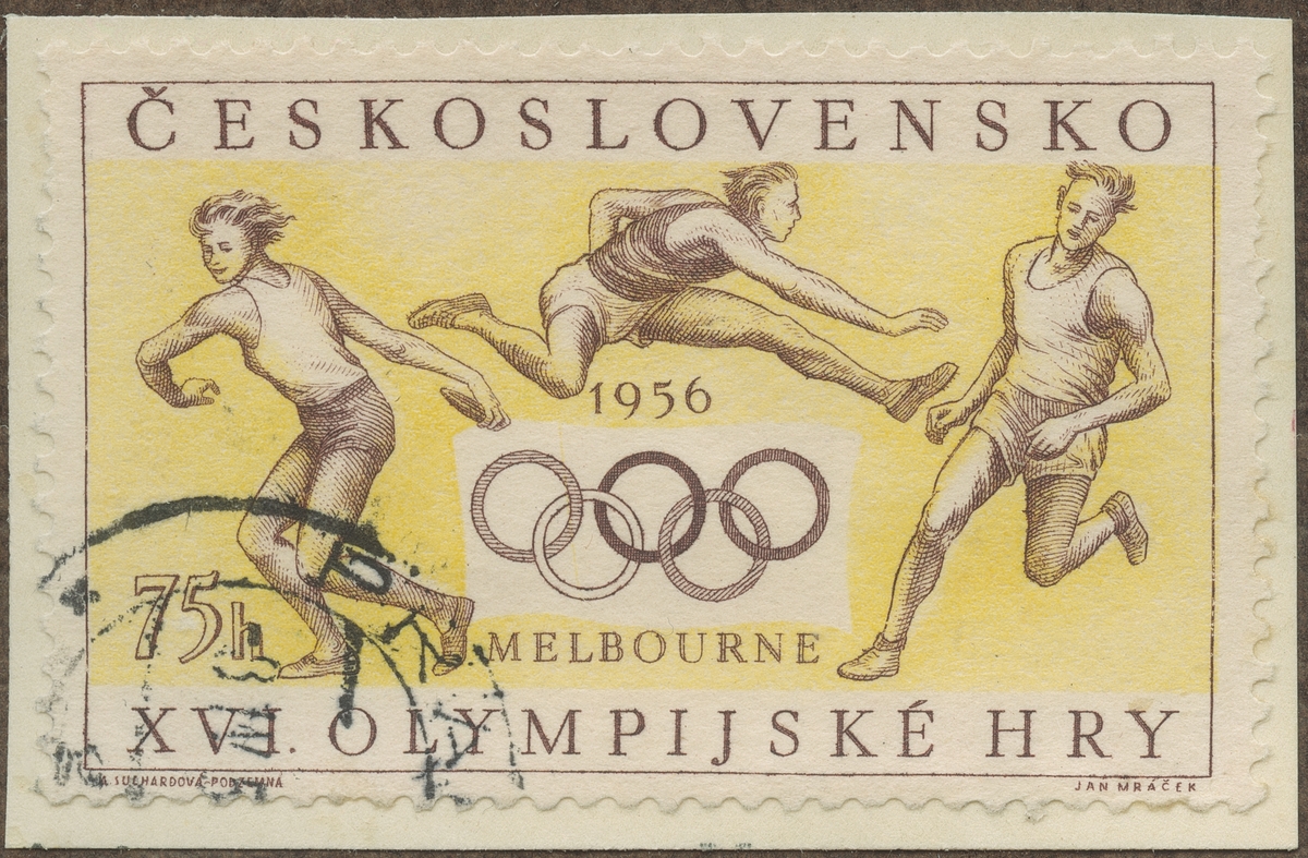 Frimärke från Tscechoslovakiet, 1956. Motiv av Olympiska Spel i Melbourne 1956