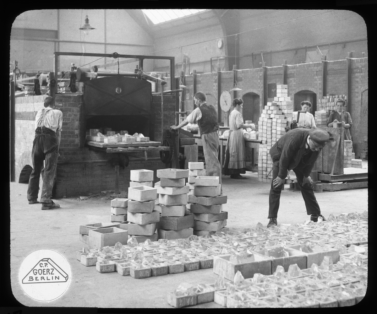 Skioptikonbild från institutionen för fotografi vid Kungliga Tekniska Högskolan. Använd av professor Helmer Bäckström som undervisningsmaterial. Bäckström var Sveriges förste professor i fotografi vid Kungliga Tekniska Högskolan 1948-1958. Optische Anstalt C. P. Goerz, Berlin.