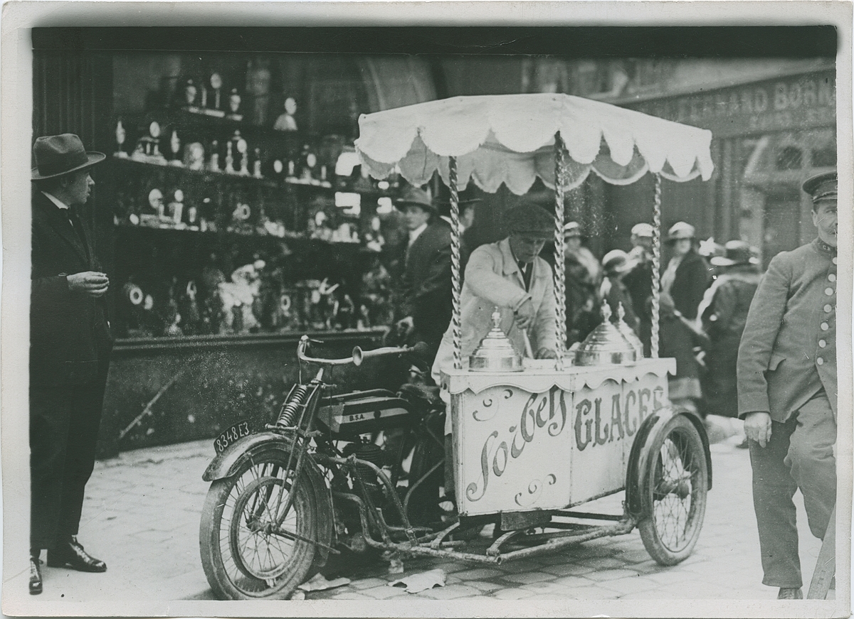 Glasskiosk på motorcykel, Frankrike.